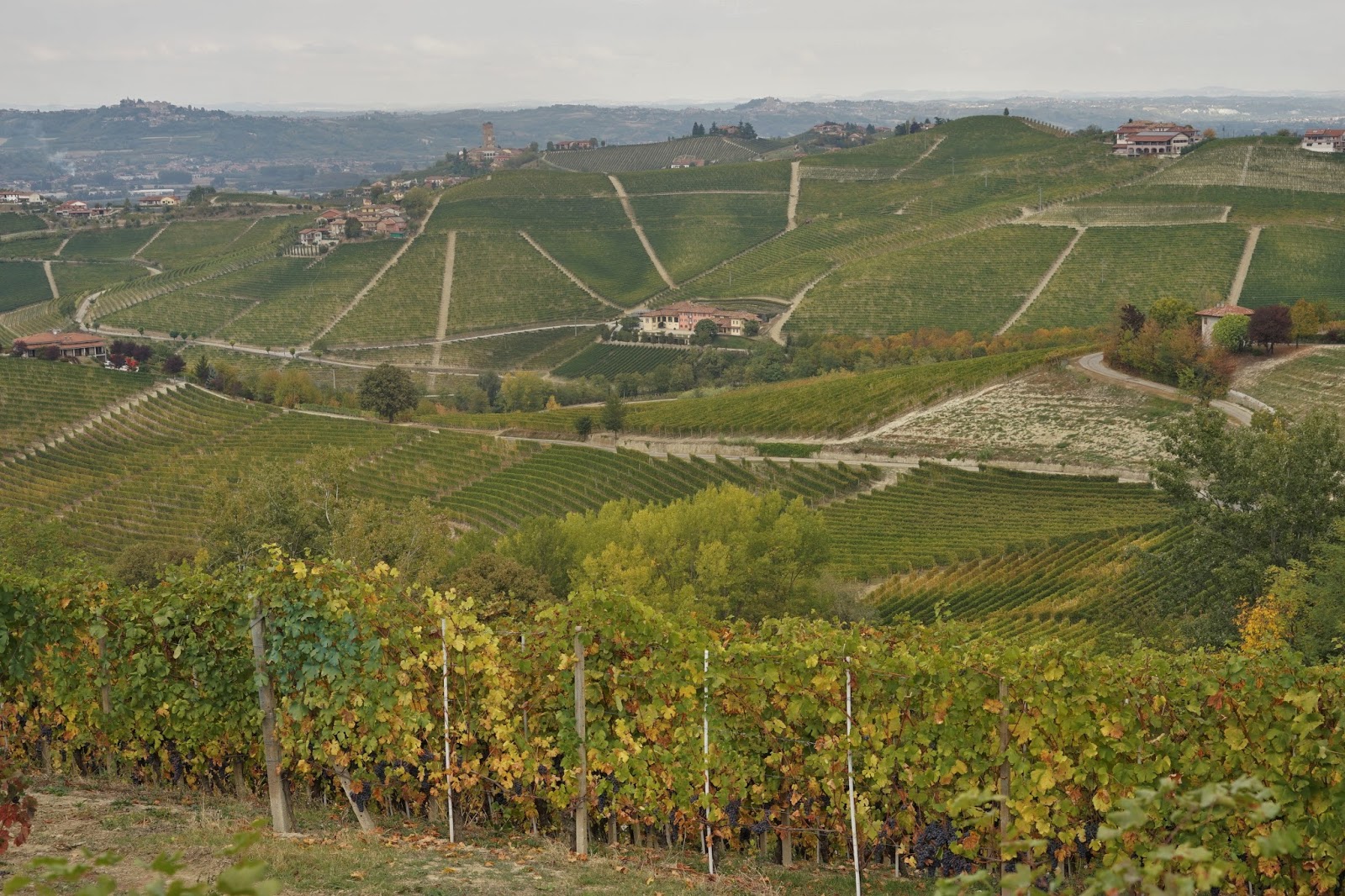Vineyards appearing manicured near Treiso, where we are heading for lunch |
